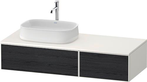Duravit Zencha Konsolenwaschtischunterbau wandhängend · 1300x550 mm · Farbe Front: Eiche (Schwarz) Matt · Farbe Korpus: Weiß Supermatt · Anzahl Auszüge: 2 · Anzahl Ausschnitte: 1 · Inkl. Konsolenplatte · Tip-on Technik - ZE4816016840000