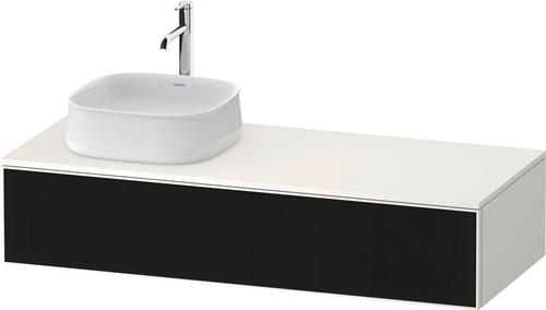 Duravit Zencha Konsolenwaschtischunterbau wandhängend · 1300x550 mm · Farbe Front: Schwarz Linienstruktur n/a · Farbe Korpus: Weiß Supermatt · Anzahl Auszüge: 1 · Anzahl Ausschnitte: 1 · Inkl. Konsolenplatte · Tip-on Technik - ZE4812L63840000