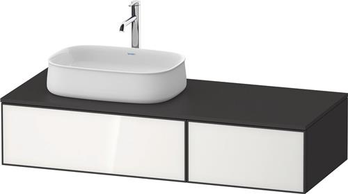 Duravit Zencha Konsolenwaschtischunterbau wandhängend · 1300x550 mm · Farbe Front: Weiß n/a · Farbe Korpus: Graphit Supermatt · Anzahl Auszüge: 2 · Anzahl Ausschnitte: 1 · Inkl. Konsolenplatte · Tip-on Technik - ZE4816064800000