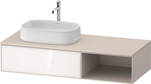 Duravit Zencha Konsolenwaschtischunterbau wandhängend · 1300x550 mm · Farbe Front: Weiß n/a · Farbe Korpus: Taupe Supermatt · Anzahl Auszüge: 1 · Anzahl offener Fächer: 1 · Anzahl Ausschnitte: 1 · Inkl. Konsolenplatte · Tip-on Technik - ZE4818064830000