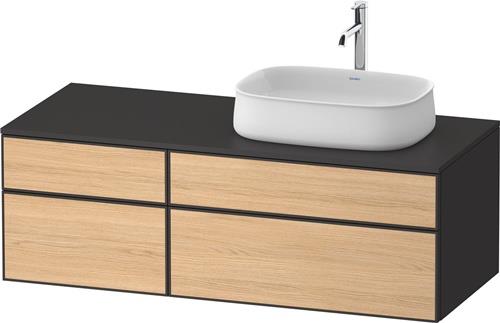 Duravit Zencha Konsolenwaschtischunterbau wandhängend · 1300x550 mm · Farbe Front: Natur Eiche Matt · Farbe Korpus: Graphit Supermatt · Anzahl Auszüge: 2 · Anzahl Schubkasten: 2 · Anzahl Ausschnitte: 1 · Siphonausschnitt · Inkl. Konsolenplatte · Tip-on Technik - Z