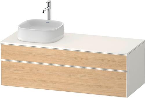 Duravit Zencha Konsolenwaschtischunterbau wandhängend · 1300x550 mm · Farbe Front: Natur Eiche Matt · Farbe Korpus: Weiß Supermatt · Anzahl Auszüge: 1 · Anzahl Schubkasten: 1 · Anzahl Ausschnitte: 1 · Siphonausschnitt · Inkl. Konsolenplatte · Tip-on Technik - ZE48
