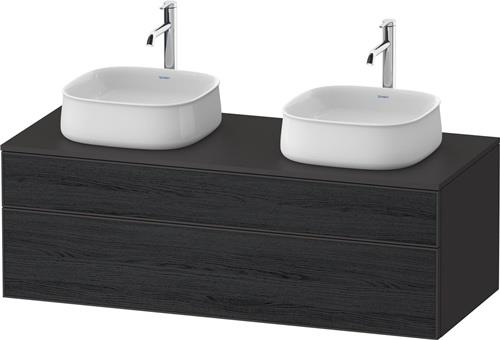 Duravit Zencha Konsolenwaschtischunterbau wandhängend · 1300x550 mm · Farbe Front: Eiche (Schwarz) Matt · Farbe Korpus: Graphit Supermatt · Anzahl Auszüge: 1 · Anzahl Schubkasten: 1 · Anzahl Ausschnitte: 2 · Siphonausschnitt · Inkl. Konsolenplatte · Tip-on Technik