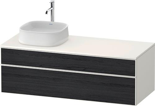 Duravit Zencha Konsolenwaschtischunterbau wandhängend · 1300x550 mm · Farbe Front: Eiche (Schwarz) Matt · Farbe Korpus: Weiß Supermatt · Anzahl Auszüge: 1 · Anzahl Schubkasten: 1 · Anzahl Ausschnitte: 1 · Siphonausschnitt · Inkl. Konsolenplatte · Tip-on Technik -