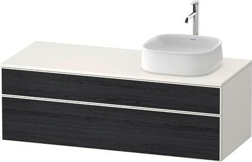 Duravit Zencha Konsolenwaschtischunterbau wandhängend · 1300x550 mm · Farbe Front: Eiche (Schwarz) Matt · Farbe Korpus: Weiß Supermatt · Anzahl Auszüge: 1 · Anzahl Schubkasten: 1 · Anzahl Ausschnitte: 1 · Siphonausschnitt · Inkl. Konsolenplatte · Tip-on Technik -