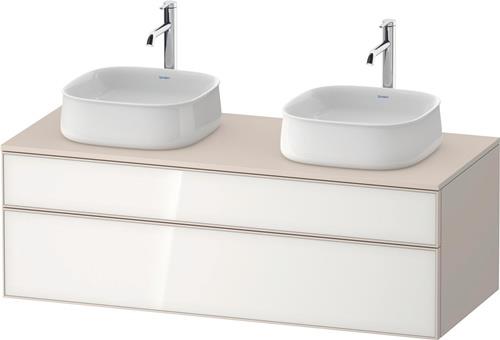 Duravit Zencha Konsolenwaschtischunterbau wandhängend · 1300x550 mm · Farbe Front: Weiß n/a · Farbe Korpus: Taupe Supermatt · Anzahl Auszüge: 1 · Anzahl Schubkasten: 1 · Anzahl Ausschnitte: 2 · Siphonausschnitt · Inkl. Konsolenplatte · Tip-on Technik - ZE4823B6483