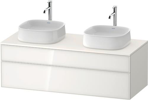 Duravit Zencha Konsolenwaschtischunterbau wandhängend · 1300x550 mm · Farbe Front: Weiß n/a · Farbe Korpus: Weiß Supermatt · Anzahl Auszüge: 1 · Anzahl Schubkasten: 1 · Anzahl Ausschnitte: 2 · Siphonausschnitt · Inkl. Konsolenplatte · Tip-on Technik - ZE4823B64840