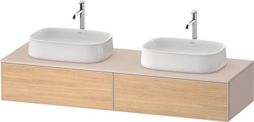 Duravit Zencha Konsolenwaschtischunterbau wandhängend · 1600x550 mm · Farbe Front: Natur Eiche Matt · Farbe Korpus: Taupe Supermatt · Anzahl Auszüge: 2 · Anzahl Ausschnitte: 2 · Inkl. Konsolenplatte · Tip-on Technik - ZE4815B30830000