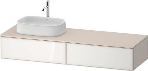 Duravit Zencha Konsolenwaschtischunterbau wandhängend · 1600x550 mm · Farbe Front: Weiß n/a · Farbe Korpus: Taupe Supermatt · Anzahl Auszüge: 2 · Anzahl Ausschnitte: 1 · Inkl. Konsolenplatte · Tip-on Technik - ZE4814L64830000