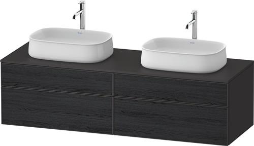 Duravit Zencha Konsolenwaschtischunterbau wandhängend · 1600x550 mm · Farbe Front: Eiche (Schwarz) Matt · Farbe Korpus: Graphit Supermatt · Anzahl Auszüge: 2 · Anzahl Schubkasten: 2 · Anzahl Ausschnitte: 2 · Siphonausschnitt · Inkl. Konsolenplatte · Tip-on Technik