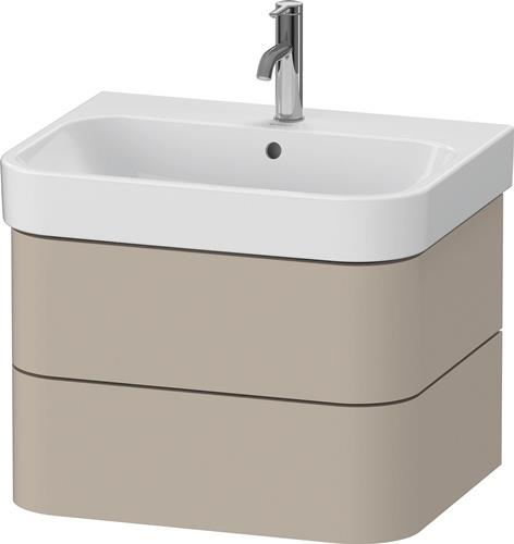 Duravit Happy D.2 Plus Waschtischunterbau wandhängend · 625x490 mm · Farbe Front: Taupe Seidenmatt · Farbe Korpus: Taupe Seidenmatt · Anzahl Schubkasten: 2 · Siphonausschnitt · Tip-on Technik - HP4386060600000