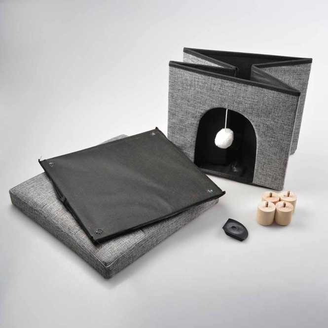 Das Katzenkratzhaus Gina von duvoplus ist ein gemütlicher und sicherer Rückzugsort für deine Katze. Das Häuschen steht auf 4 stabilen Beinen und hat eine integrierte Sisal-Kratzmatte. Es bietet 2 Liegeflächen und ist kompakt, so dass es überall in deinem Zuhause leicht Platz findet.