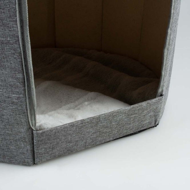 Das duvoplus faltbare Katzenhaus ist der perfekte Rückzugsort für Katzen, die Gemütlichkeit und Komfort lieben. Dieses kompakte Haus bietet gleich zwei kuschelige Schlafplätze, jeweils mit einem weichen Kissen für zusätzlichen Liegekomfort. Dank des faltbaren Designs lässt sich das Haus leicht transportieren, flach zusammenpacken und bequem verstauen.