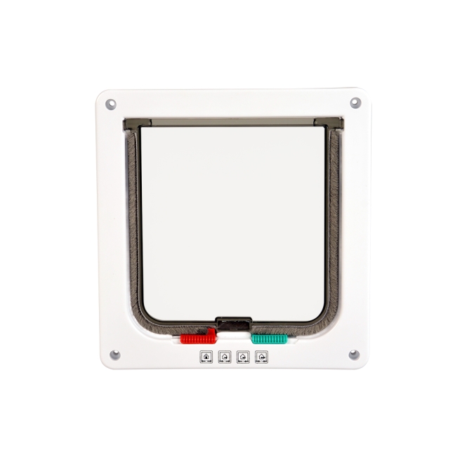 Die transparente duvoplus Katzenklappe hat einen weißen Rahmen und ist aus strapazierfähigem, witterungsbeständigem Kunststoff hergestellt. Die vier Einstellungen bieten Ihnen und Ihrer Katze viele verschiedene Möglichkeiten. Sie können die Katzenklappe in beide Richtungen schließen oder in beide Richtungen öffnen oder auch nur in eine Richtung öffnen, sodass Ihre Katze nur hinaus oder hinein gelangen kann. Die Katzenklappe verfügt über eine selbstschließende Magnetvorrichtung, damit sie immer gut schließt und in Ihrem Haus keine Zugluft entsteht. Dieses Modell ist für kleine bis mittelgroße Katzen geeignet. Überprüfen Sie vorher, ob die Maße für Ihre Katze passen. Der verstellbare Tunnel ist für Wände und Türen mit einer Stärke bis zu 50 mm geeignet. Für eine einfache Montage liegt der Katzenklappe eine Papierschablone bei. Kleben Sie die Schablone einfach auf die Tür und schneiden Sie rundherum.