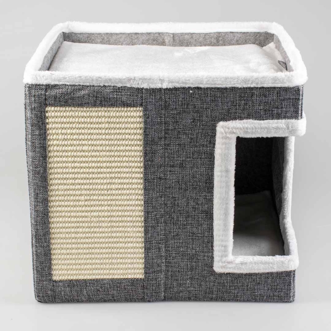 Das Katzenkratzhaus Gaby von duvoplus ist ein gemütlicher und sicherer Rückzugsort für deine Katze. Das Häuschen ist faltbar und hat eine eingearbeitete Sisal-Kratzmatte. Es hat 2 Liegeflächen und ist mit weichem Plüsch und einem herausnehmbaren Kissen ausgestattet. Gaby ist kompakt und passt daher überall leicht in dein Zuhause.