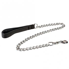 Die Kettenleine von duvoplus ist eine Kombination aus einer silbernen Stahlkette (verchromt) und einem hochwertigen gepolsterten Griff aus Nylon.