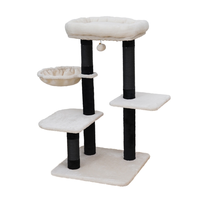 • Stabiler Kratzbaum mit Hängematte und bequemer Sitzplattform