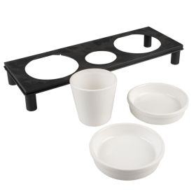 Diese 3 Keramikschüsseln von Duvoplus Dinner Time werden in Silikat Keramik hergestellt und sind daher sehr langlebig und stabil. Servieren Sie Ihrem Haustier in diesen eleganten Schüsseln Wasser sowie Trocken- und Nassfutter. Dank dem Email-Finish bester Qualität sind die Schüsseln dicht, einfach zu reinigen und können auch im Geschirrspüler gewaschen werden. Das Dinner Set mit Ständer aus schwarzem Metall ist nicht nur elegant, sondern gewährleistet Halt und Haftung für eine komfortable Futtereinnahme, was dazu beitragen kann, Gelenks-und Verdauungsprobleme zu reduzieren. Das Set verfügt über eine zusätzliche Schüssel für Katzengras und Snacks. Ihr Haustier ist jetzt bereit für ein köstliches „Dinner Time“.