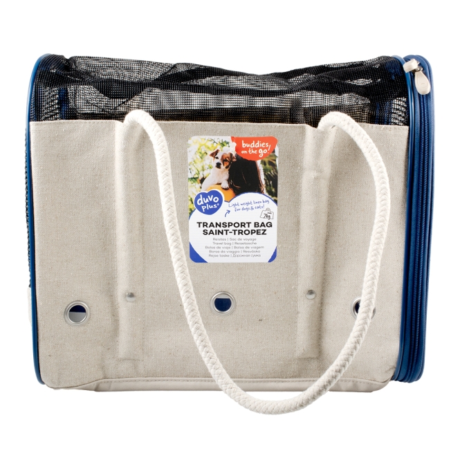 Mit dieser leichten und zeitgemäßen Reisetasche Saint-Tropez von duvoplus 'Buddies on the go!' kannst du deine Katze oder deinen Hund überallhin mitnehmen. Diese qualitativ hochwertige und wasserabweisende Tasche ist aus Leinen gefertigt und verfügt über einen weichen Boden für zusätzlichen Sitzkomfort. Das herausnehmbare Kissen ist leicht zu reinigen. Die Oberseite ist mit Belüftungslöchern ausgestattet, damit dein Vierbeiner immer ausreichend Luft bekommt. Dank der robusten Tragegriffe kannst du die Handtasche überallhin mitnehmen. Die Tasche verfügt außerdem über eine zusätzliche Aufbewahrungstasche und eine Halsbandbefestigung. Sorgenfrei, sicher und bequem unterwegs! Geeignet für Hunde und Katzen bis max. 7 kg.
