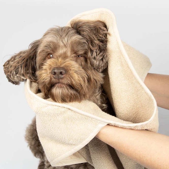Nach dem Baden, Schwimmen oder einem matschigen Abenteuer ist das Noir Japandi Hundehandtuch die ideale Lösung, um Ihren Hund schnell und komfortabel zu trocknen. Es besteht aus weicher, hochsaugfähiger Baumwolle, die Feuchtigkeit effizient aufnimmt und sanft zum Fell ist. Dank der praktischen Griffe können Sie Ihren Hund mühelos abtrocknen. Erhältlich in stilvollem Beige, vereint das Noir Japandi Handtuch praktische Funktionalität mit zeitlosem Japandi-Stil.