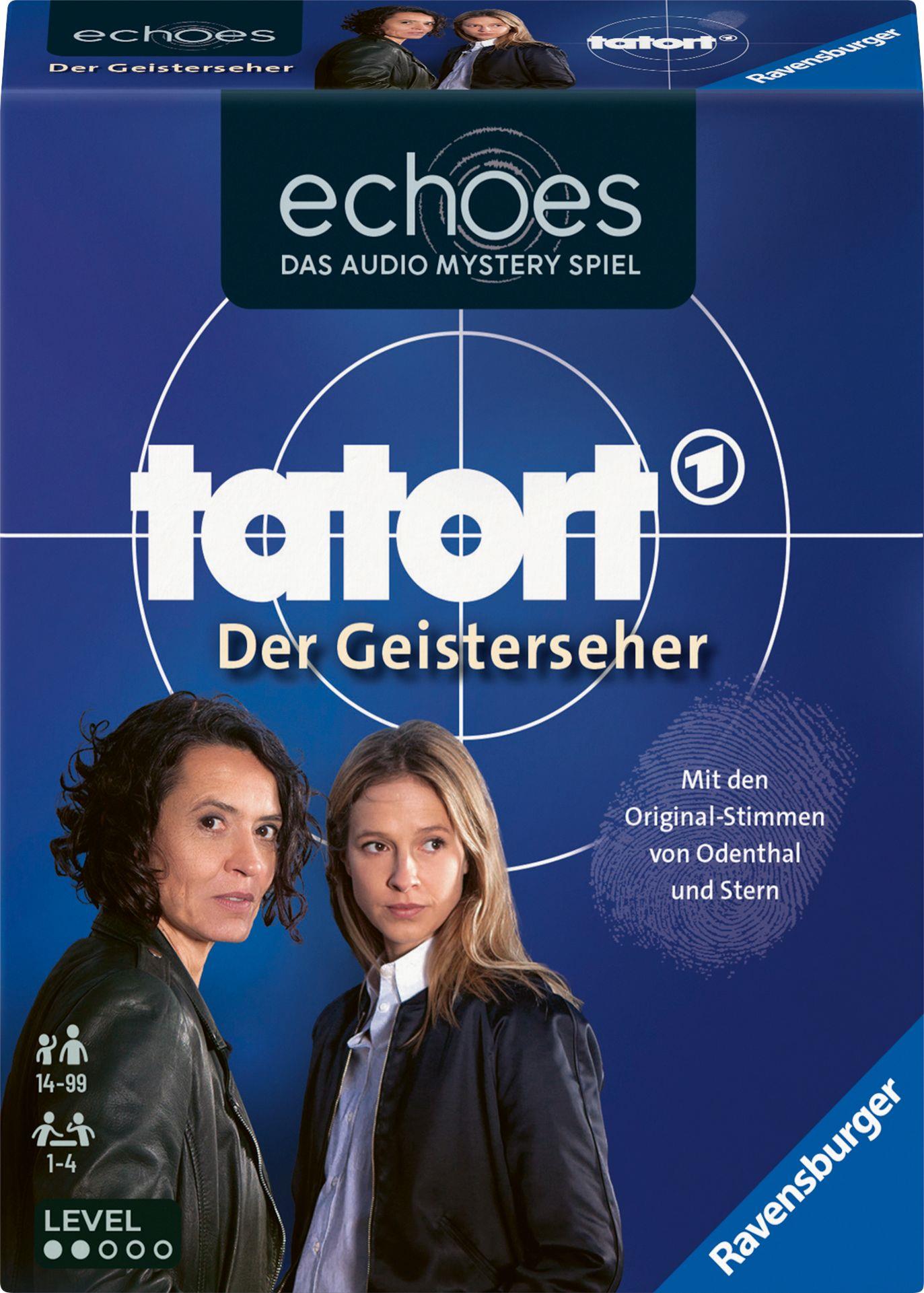 Tatort in der Pfalz: Bauer Feldmann wurde ermordet. Die Spieler ermitteln gemeinsam mit Lena Odenthal und Johanna Stern. echoes ist ein kooperatives Audio Mystery Spiel. Die Spieler hören mithilfe der kostenlosen Ravensburger echoes App mysteriöse Geräusche und Stimmen, die mit den Kartenmotiven verbunden sind. Gemeinsam bringen sie die 24 Teile der Geschichte in die richtige Reihenfolge, um den Fall zu lösen.Die kostenlose Ravensburger echoes App wird zum Spielen benötigt. Im Lauschen-Modus der App können die Spieler die Sounds abspielen. Im Lösen-Modus überprüfen die Spieler jeweils vier Karten auf ihre Reihenfolge, um Kapitel für Kapitel zu lösen. Zum Schluss müssen die Spieler die gesamte Geschichte in die richtige Reihenfolge bringen, um den Fall zu lösen.Für ein optimales Spielerlebnis mit Kamera-Erkennung wird ein Gerät mit folgenden Anforderungen benötigt: Mindestens iPhone 6s mit iOS 12.0 oder neuer / Android-Gerät mit mindestens Android 7.0 und kompatibel mit den Google-Play-Diensten für AR (Diese können auf manchen Geräten nachträglich installiert werden). Falls das Gerät diese nicht erfüllt, kann per manueller Eingabe gespielt werden.