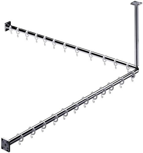 2x Duschvorhangstange · 1x Befestigungs-Set · 1x Eckverbinder · 1x Deckenstütze · 24x Duschvorhangringe