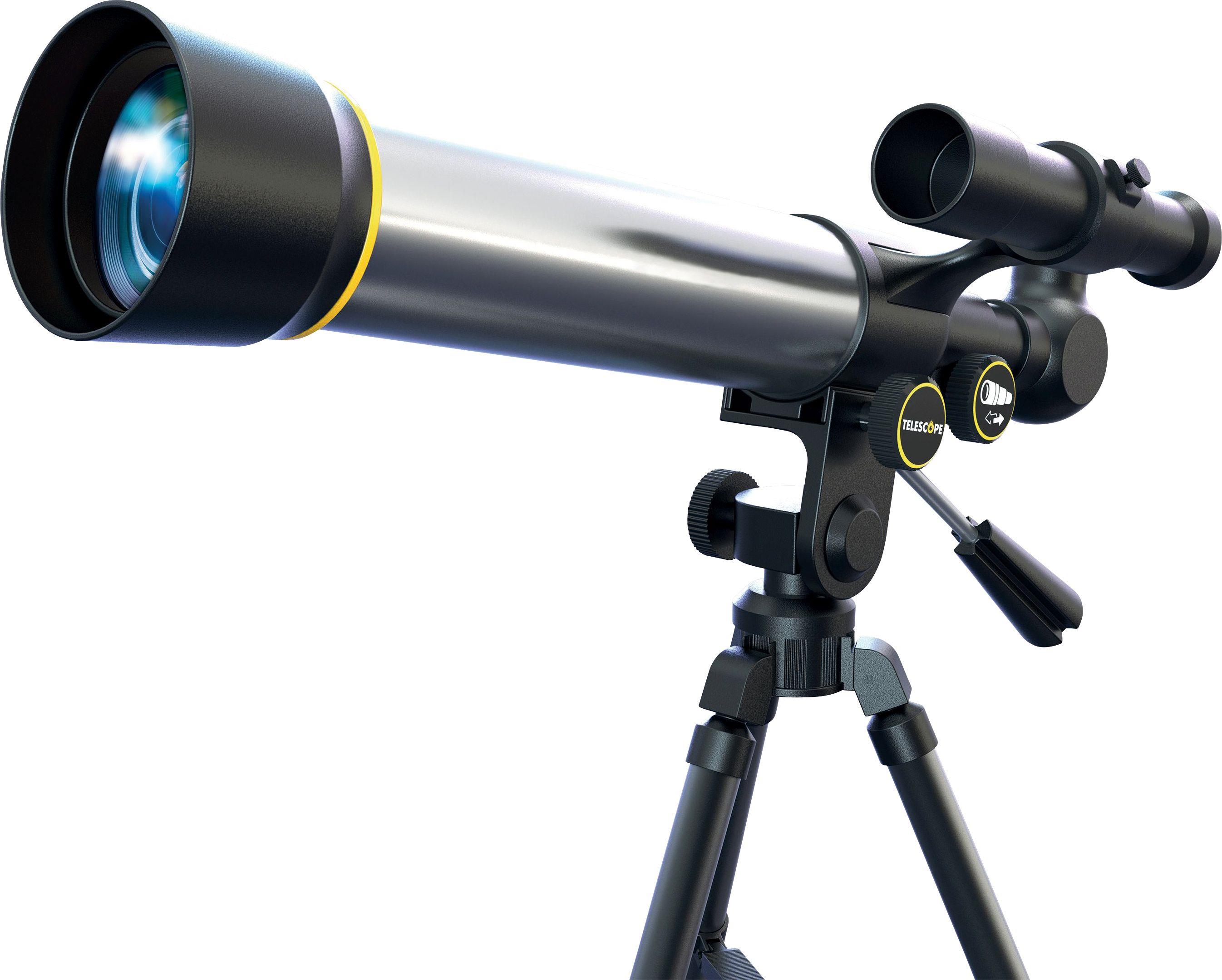 Das Entdecker Teleskop ist einfach, aber professionell. Es eine Länge von ca. 39-55 cm und beinhaltet ein Stativ mit einer Höhe von ca. 39 cm. Es hat eine Vergrößerung von 20x und 60x und eine Brennweite von ca. 350 mm. Inklusive 2 Okulare mit einer Vergrößerung von 20x und 60x. Für Kinder ab 6 Jahren.