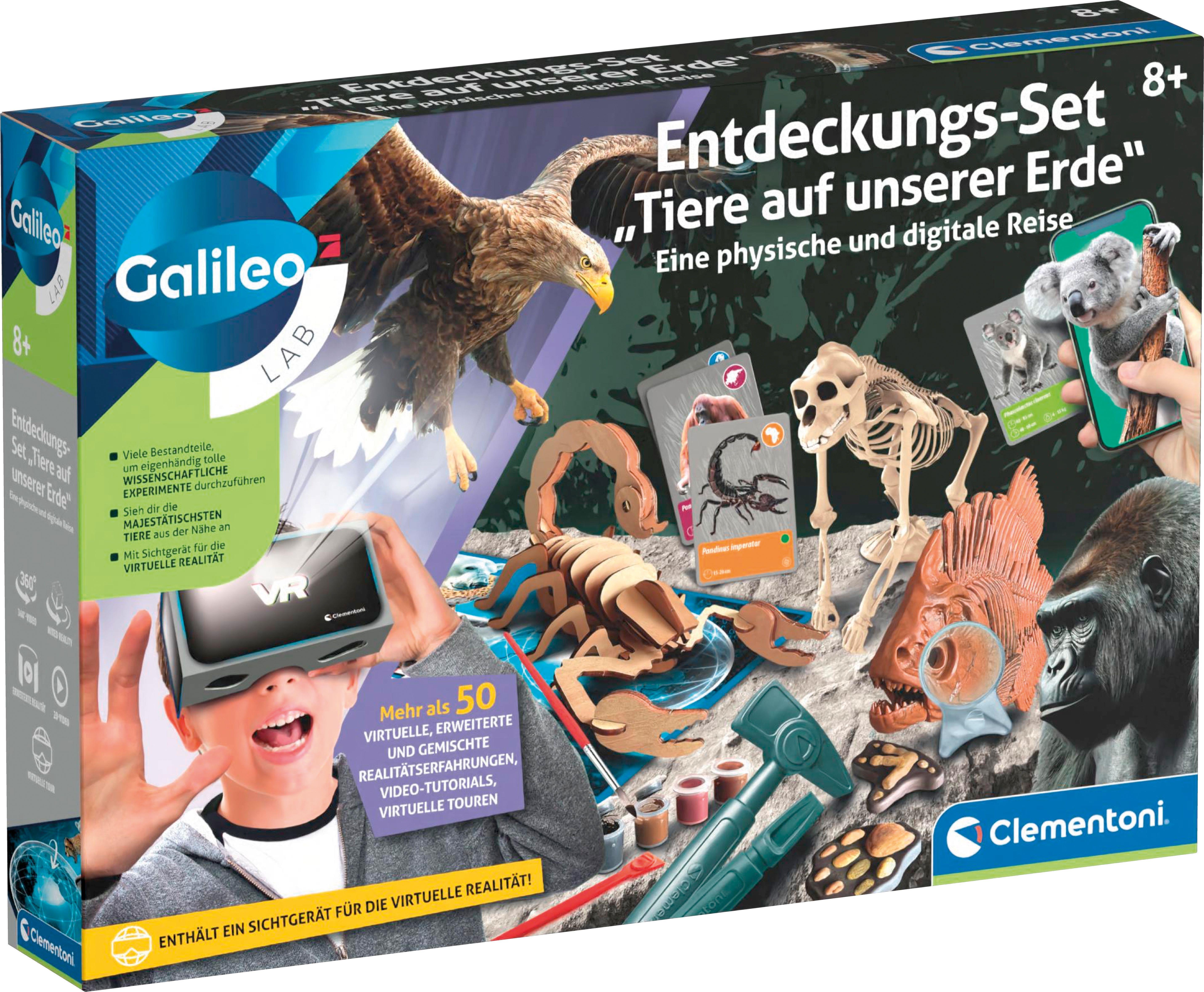 Die Erkundung der Schönheit unseres Planeten wird zu einer fesselnden Reise, die die physische und die digitale Welt miteinander verbindet und die Tiere unserer Erde und ihre Lebensräume vorstellt. Die App führt in eine digitale Welt mit über 50 spannenden Erlebnissen. Augmented Reality wird mit Mixed Reality kombiniert, um 360°-Videos, virtuelle Rundgänge und Lernvideos anzubieten. Zwei niedliche Avatare führen durch die Aktivitäten und vermitteln gleichzeitig wissenschaftliche Erkenntnisse über die verschiedenen Wunder, die auf den Kontinenten und in den Ozeanen unseres Planeten zu finden sind. Um das Eintauchen in die Materie zu vervollständigen, enthält das Set einen VR-Viewer, mit dem man Videos in 360° und virtuelle Rundgänge auf eine völlig neue Art und Weise erkunden kann. Dieses anregende Erlebnis voller wissenschaftlicher Experimente, die die Kinder selbständig unter Verwendung der vielen enthaltenen Komponenten durchführen können, wird für Kinder ab 8 Jahren empfohlen.