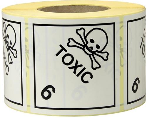 Etiketten Maße 100x100mm Papier weiß Aufdruck Toxic TRANSPAK