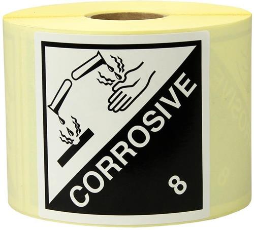 Etiketten Maße 100x100mm Papier weiß/schwarz Aufdruck Corrosive TRANSPAK