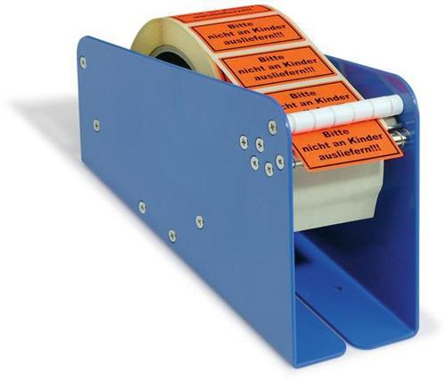 Robuste Konstruktion aus Stahlblech Verstellbare Distanzteile aus Softgummi ermöglichen die Nutzung von mehreren Etikettenrollen Ideal für das Aufkleben kleinerer Etikettenmengen von Hand