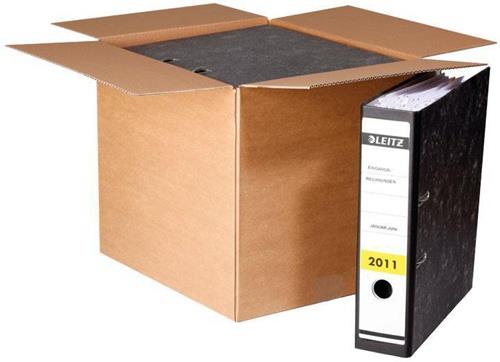 Deckenpapier aus Testliner Ideal für den Postversand Für Güter bis 20 kg Geeignet für Lagerung und Versand von DIN A4 Ordnern Für bis zu vier befüllte Ordner mit einer Rückenhöhe bis 80 mm Platzsparende Lagerung durch flachliegende Anlieferung Individuelle Bedruckung - auch mehrfarbig - möglich