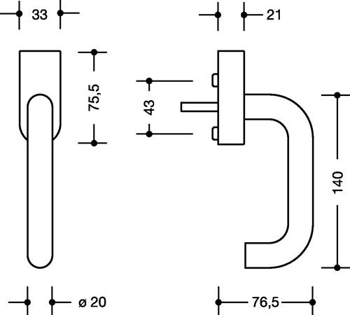 für Fenster mit der Funktion Kippen vor Drehen · Edelstahl · Durchmesser 21,3 mm · 140 mm lang · mit 7 mm Vierkantstift · der Fenstergriff erfüllt die Vorgaben der DIN 18040 · Rosette mit Metallunterteil 75,5 x 33 mm · mit Stützzapfen · mit integriertem Druckzylinder · mit 5 Stiftzuhaltungen · Oberfläche des Fenstergriffes und der Rosette matt geschliffen · im Auftragsfall bitte die genaue Stiftlänge angeben