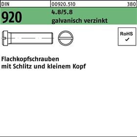 DIN 920 4.8/5.8 galvanisch verzinkt Flachkopfschrauben mit Schlitz und kleinem Kopf - Abmessung: M 3 x 16 VE=S (100 Stück)