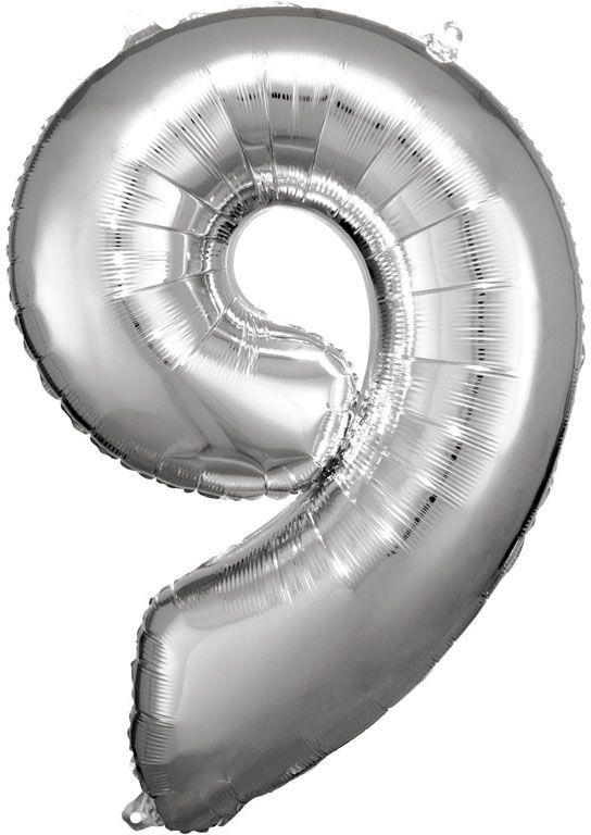 Grosse Zahl 9 Silber Folienballon N34 verpackt 63 cm x 86 cm