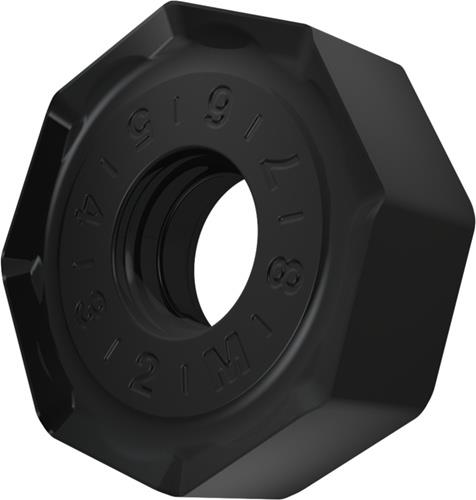 Doppelseitige Fräswendeschneidplatte ONMX 0605 · Oktagonal für eine maximale Schnitttiefe von 4mm · mit 0.8mm Eckenradius · eine Indexierungsgenauigkeit gemäß ISO-Toleranzklasse-M und M Geometrie mit verrundeter und facettierter Schneidkante · M9325 MT-CVD Beshcichtung WC-Co Substrat in der ISO-Gruppe P10 -P30 zum bearbeiten von Stahl mit Planfräsern SON06C