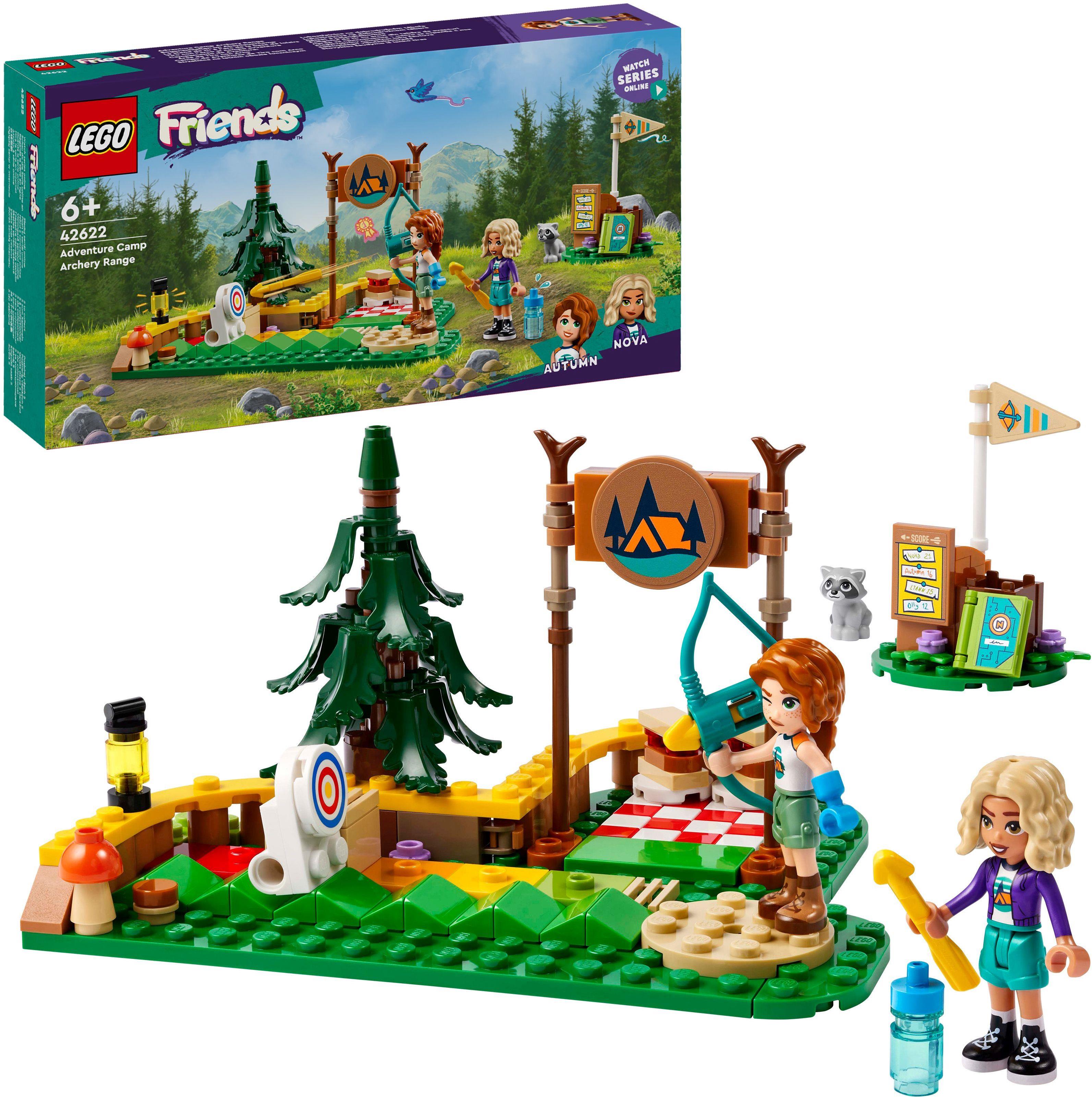 LEGO Friends Bogenschießen im Abenteuercamp (42622) ist ein Bauspielzeug für Kinder ab 6 Jahren. Das Spielzeug-Bogenschießset beinhaltet die Spielfiguren Autumn und Nova, einen Waschbären und jede Menge Sportzubehör. Mädchen und Jungen können so tun, als würden sie das Zielen üben. Der Bogen verschießt tatsächlich Pfeile. Wenn das Ziel vom Pfeil getroffen wird, klappt es nach unten. Es gibt eine farblich markierte Schwierigkeitsskala. Je weiter entfernt die Kinder das Ziel aufstellen, desto schwieriger wird die Aufgabe. Kleine Abenteurer können unzählige Geschichten mit dieser kreativem Spielzeug darstellen. Für Autumn sind 2 verschiedene Gesichter enthalten, um sie beim Zielen anders dreinblicken zu lassen. Nova bekommt das Bogenschießabzeichen für ihr Campaktivitätenbuch. Dann stärken sich Autumn und Nova mit einem Sandwich. Aber Vorsicht: Der freche Waschbär möchten den Freundinnen einen Happen wegschnappen! Dieses Kinder-Bogenschießset ist eine tolle Geschenkidee für Kinder. Zu dem Sport-Spielzeug ist auch die LEGO Builder App verfügbar, die ein leichtes und intuitives Bauabenteuer bietet. Die App lässt Kinder 3D-Ansichten der Modelle im Pfeil und Bogen Set vergrößern und drehen, Sets speichern und den Baufortschritt verfolgen. Die Bogenschießanlage ist 8 cm hoch, 14 cm breit und 12 cm tief. Enthält 157 Teile.