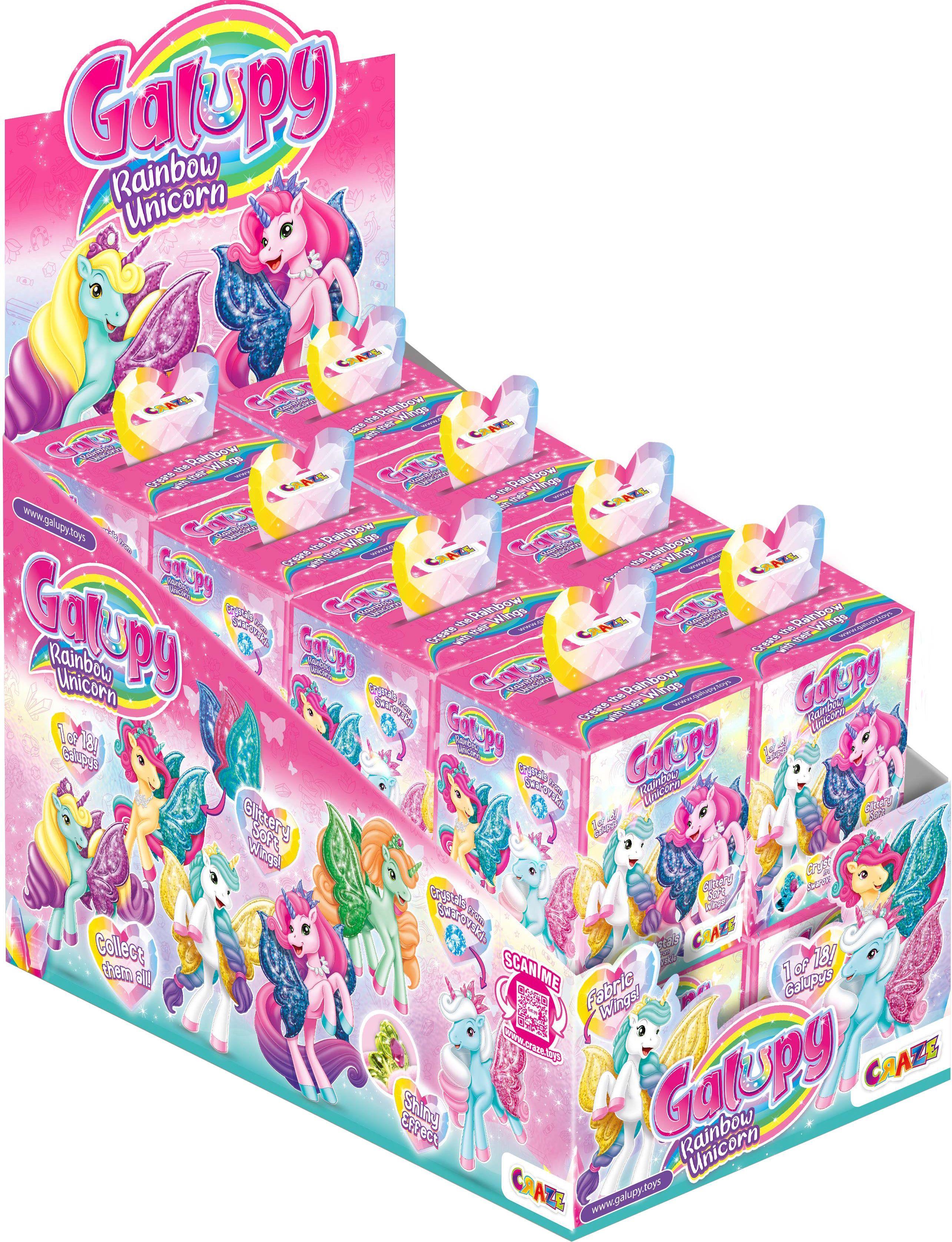 "Serie 4 der Galupy Range 1 von 18 Galupy-Regenbogen-Einhorn-Figuren zum Sammeln. Glitzernde Stoffflügel in 6 Farben, passend zur Krone und zum Horn. Mit echten Swarovski-Kristallen. 2 Selten zu finden! verpackt mit einem Beipackzettel in einer speziellen schillernden Box mit Euroloch."
