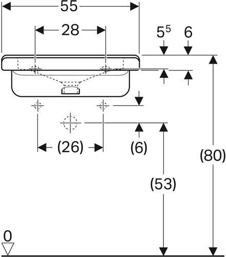 Geberit Waschtisch RENOVA COMFORT Square barrierefr m HL o ÜL 550x525mm weiß KT