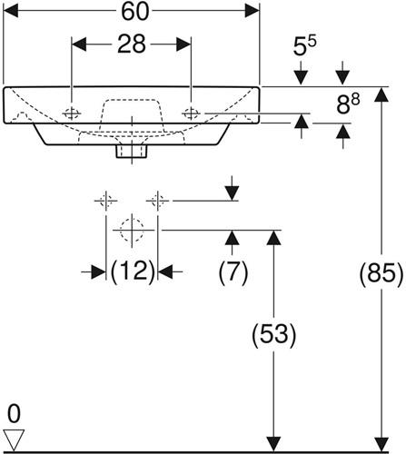 Geberit Waschtisch SMYLE Square mit Hahnloch mit Überlauf 600x480mm weiß