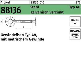 Gewindeöse R 88136 Typ 48 M8x 20 D 12 Stahl galv.verz. 50 Stück - VPE: 50