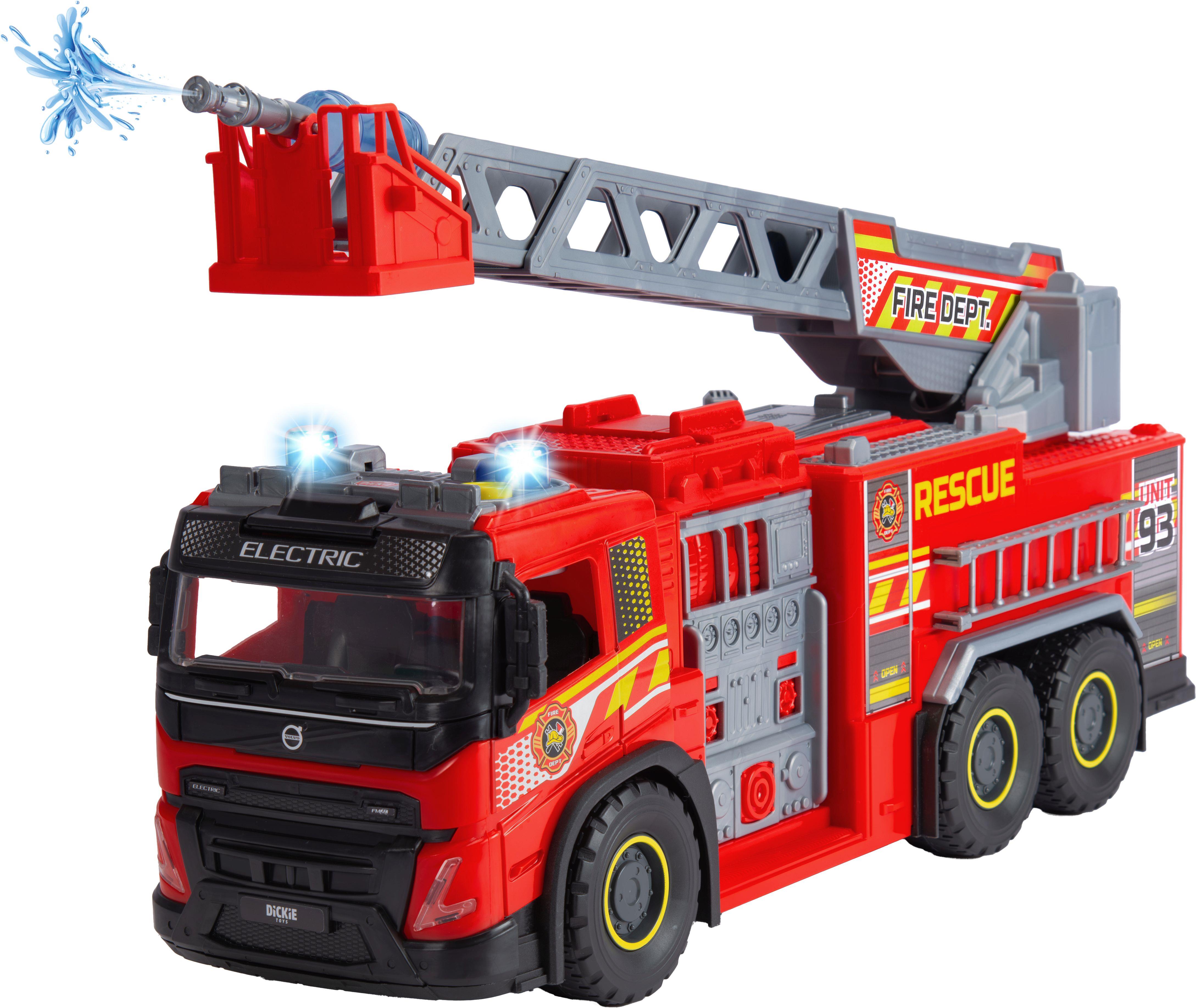 Dickie Toys - Volvo FMX Giant Fire Truck (57 cm) - extra-großes Feuerwehrauto mit Wasserspritze & Leiter, Feuerwehr-Truck für Kinder ab 3 Jahre mit Licht & Sound, inkl. Batterien • Riesiges Feuerwehr-Auto - Stolze 57 cm Länge misst diese knallrote Spielzeug-Feuerwehr für Kinder ab 3 Jahren: Und wird die drehbare Leiter ausgezogen, geht der Lösch- oder Rettungseinsatz erst richtig los! • Echte Spritzfunktion - Mithilfe der 2 Wassertank-Flaschen und der Wasserkanone auf dem Feuerwehrwagen können die Kids alle Feuerwehr-Abenteuer nachspielen und richtiges Wasser verspritzen. • Original Volvo FMX Electric - Als offiziell lizenziertes Volvo Modellauto begeistert das große Feuerwehrfahrzeug die Mädchen und Jungen mit unzähligen Details zum Entdecken und Bestaunen. • Coole Extras - Natürlich dürfen bei einem richtigen Feuerwehrauto eine typische Sirene und Blaulicht nicht fehlen. Deshalb ist das Spielzeugauto mit beidem ausgestattet - inkl. aller Batterien! • Dickie Toys - Die Fahrzeug-Marke für Kinder! Kleine Racer, große Renner: Wir haben immer ein Ziel vor Augen: Kindern ein Lächeln ins Gesicht zu zaubern. Einfach auspacken und los geht der Spaß!