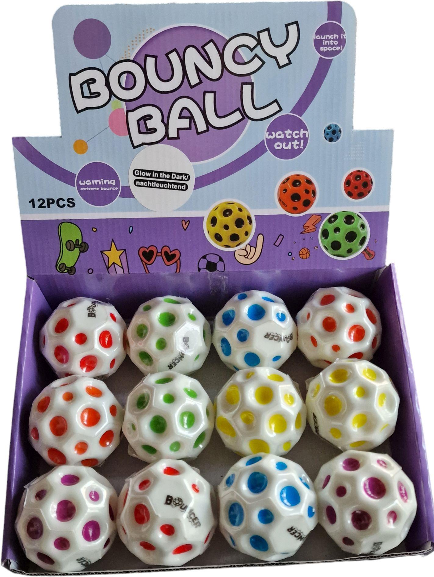 "Trendalarm der großen, bunten Flummis! Und das Highlight: Die Astro Flummis sind nachtleuchtend! Sprich, einfach ein wenig unter Licht legen und dann leuchtet der Ball im Dunkeln. Eigenschaften: Glow in the dark Effekt Größe: Unsere Flummis haben einen großzügigen Durchmesser von 6,0 cm, was sie zu den idealen Begleitern für aufregende Spiele und Wettbewerbe macht. Das Material ermöglicht es, atemberaubende Sprünge und Bounces zu erleben. Ein Wettbewerb auf dem Schulhof, mit den Geschwistern oder auch alleine! Farbenfrohes Design: Diese Flummis sind in einer Vielzahl von leuchtenden und ansprechenden Farben erhältlich. Egal, ob Sie klassisches Blau, knalliges Rot, strahlendes Gelb oder andere aufregende Farben bevorzugen, wir haben für jeden Geschmack etwas Passendes im Angebot. Hochwertiges Material: Unsere Flummis sind aus hochwertigem Gummi gefertigt, der für Strapazierfähigkeit und eine lange Lebensdauer sorgt. Sie sind robust genug, um intensives Spielen und Springen zu überstehen, ohne an Qualität zu verlieren. Vielseitiger Spielspaß: Diese Flummis sind perfekt für Spiele im Freien, auf dem Schulhof, im Garten oder drinnen. Sie eignen sich hervorragend für Wettbewerbe, Fangspiele, Jonglieren oder einfach nur für das Hüpfen und Springen. Ideales Geschenk: Unsere bunten Flummis sind das perfekte Geschenk für Kinder, Jugendliche und Erwachsene, die sich nach Spaß und Abenteuer sehnen. Sie eignen sich auch hervorragend als Mitgebsel bei Geburtstagsfeiern und anderen besonderen Anlässen. Entdecken Sie eine Welt voller Freude und Spannung mit unseren bunten Flummis. Bestellen Sie noch heute und erleben Sie unvergessliche Momente des Spielens und Lachens! "