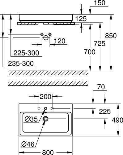 GROHE Aufsatzwaschtisch Cube Keramik 1 HL m ÜL 800x490mm PureGuard/awe