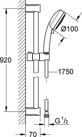 mit 4 Strahlarten, bestehend aus: Handbrause Tempesta 100 C (27573), Brausestange Tempesta C 900 mm (27522), Brauseschlauch Relexaflex 1750 mm (28154), DreamSpray, StarLight Oberfläche, SpeedClean Antikalk-System
