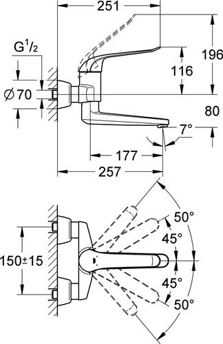 Wandmontage · StarLight Oberfläche · SilkMove 46 mm Keramikkartusche · EcoJoy Wasserspar-Technologie · variabel einstellbare Mengenbegrenzung · mit Temperaturbegrenzer · Laminarstrahlregler 9 l/min · schwenkbarer und feststellbarer Gussauslauf · Bedienungshebel aus Metall · Hebellänge 120 mm