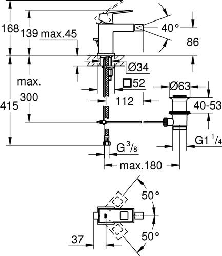 Grohe Einhand-Bidetbatterie EUROCUBE 1/2Zoll su-st