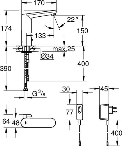 Grohe Infrarot-Elektronik EUROSMART CE 1/2Zoll L-Size m Mischung Steckertrafo ch