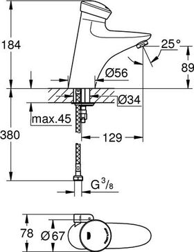 Grohe Selbstschl.-WTB EURODISC SE m Mischung 6 V Batt chr