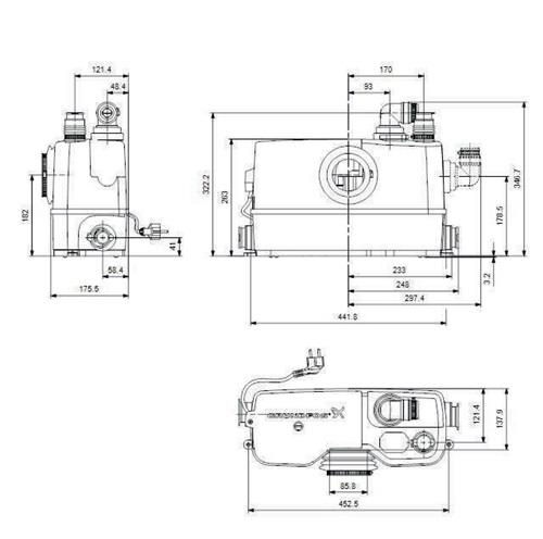 Grundf Fäkalienhebeanlage SOLOLIFT2 WC-3 0,62 kW, 230-240 V/50 Hz 453x176x347mm